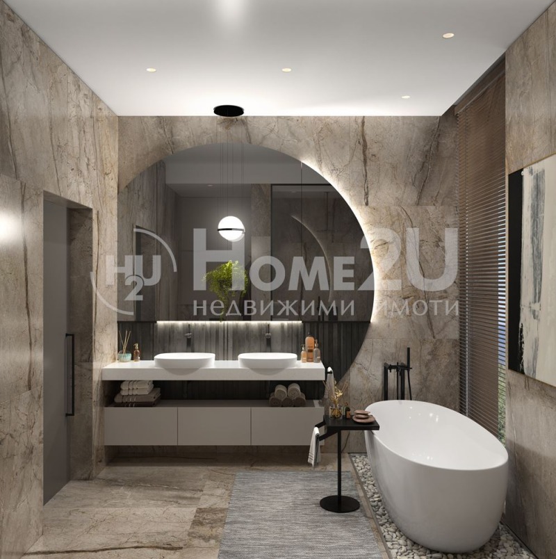 Предлага се за продажба с напълно завършен ландшафтен, екстериорен и интериорен проект, като за подвижното обзавеждане е определена допълнителна цена от 50 000евро, които при желание може да не бъдат добавени.