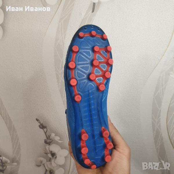 Messi 16.3 идва с уникална външна подметка, която е разработена в тясно сътрудничество с Лионел Меси. Подметката, известна като messiGAMBETRAX, е проектирана за скорост и следователно е изключително чувствителна, за да ви даде този експлозивен пръст. Специалната му форма също така служи за поддържане на крака ви стабилен в ботуша. MessiPRINT, както е наречена конфигурацията на шпилката, съчетава сурова скорост и интелигентна маневреност. По-голямата част от шиповете са триъгълни шипове, които проникват в земята по агресивен начин, което ви позволява да ускорите бързо. От друга страна, двата предни и двата задни шипа са заоблени, което ви позволява лесно и безопасно да маневрирате, дори и на най-малките площи на терена.Тегло: 237 грама.