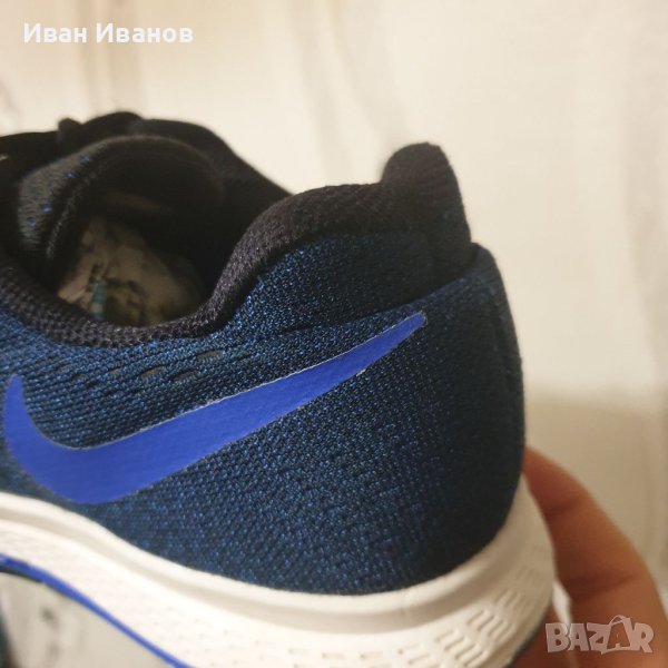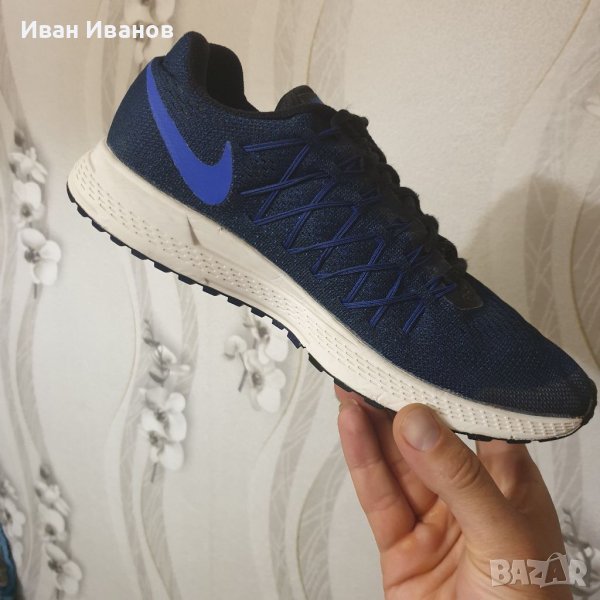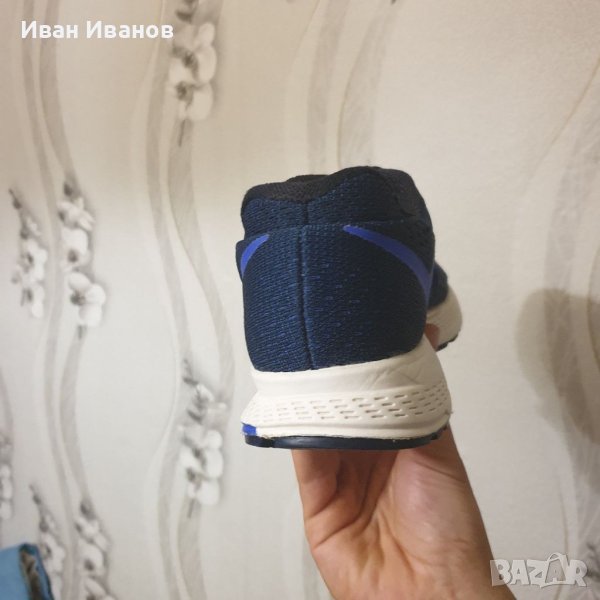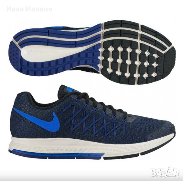 маратонки NIKE AIR ZOOM PEGASUS 32 749340-014 SR са изключително удобни, леки и осигуряват отлично омекотяване, идеални за ежедневно бягане и тренировки. Лек, 3-слоен мрежест материал в горната част е дишащ, лек, еластичен и влагоотвеждащ за по-удобно бягане при лошо време. Супер силен Flywireминаваща от външната подметка по страничните панели до линията на връзките и действаща като капси за връзките, подсилвайки конструкцията на горната част и давайки на крака оптимална стабилност и опора. Връзката е симетрична за плътно и удобно прилягане. Вътрешната чашка за петата осигурява и предпазва петата. Стелката осигурява комфортна позиция на крака и е мека и еластична. Като материал на междинната подметка е използвана олекотена пяна Cushlon , която създава усещане за еластично и меко омекотяване, не се деформира по време на носене и запазва амортизиращите си свойства през целия живот на маратонката. Под петата в междинната подметка е модулът Zoom Air , който се състои от капсула Nike Airсъс сгъстен въздух и вътрешни влакна, и ефективно абсорбира ударните натоварвания, намалявайки въздействието им върху ставите и връзките. Устойчивата на абразия гумена подметка осигурява отлично сцепление върху различни земни повърхности благодарение на приложената вафлена шарка на протектора. Водещите линии, минаващи по дължината на подметката, осигуряват търкаляне на крака, което прави бягането по-малко енергоемко. Напречните канали на външната подметка я правят по-гъвкава и отзивчива. Моделът е представен в наситен син цвят с бежова подметка, която идеално контрастира с тъмната горна част.