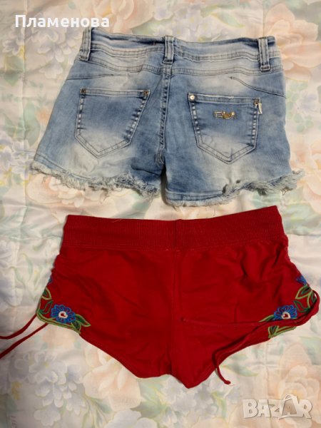 Дамски къси дънки + дамски къси червени панталонки. Използвани, но в отлично състояние. Размер С/М. При интерес, ще измеря допълнително. Цена на всеки модел - по 5 лв.
