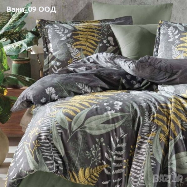Спален комплект от 4 части, 100% сатениран памук с екзотичен флорален принт в зелени нюанси