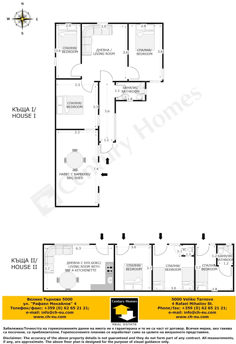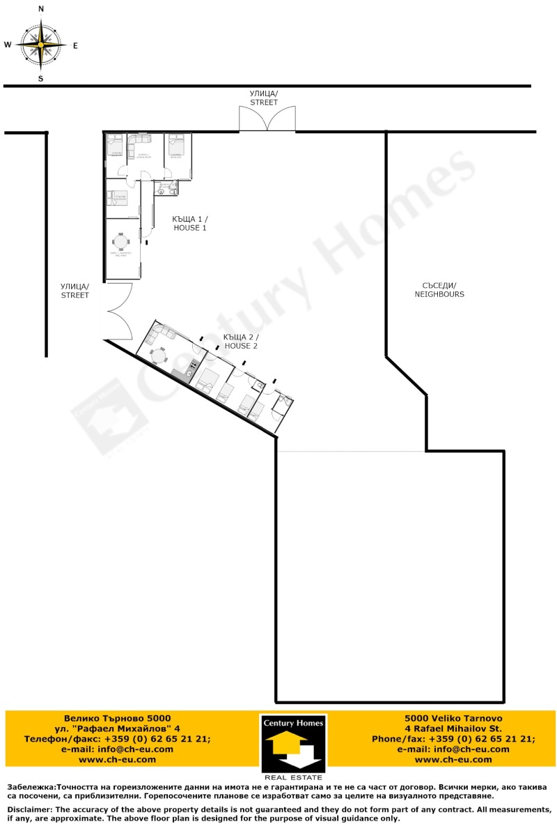 Имотът се състои от две къщи, чиято жилищна площ е 160 кв.м. общо. Първата къща се състои от коридор, баня с тоалетна и преходна всекидневна, водеща към спални. Другата се състои от 4 отделни стаи, две от които със самостоятелни санитарни възли.