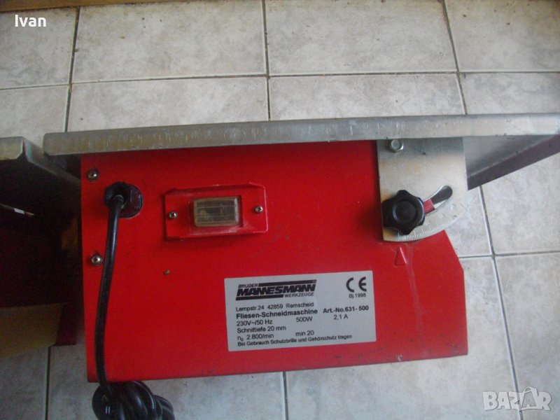 На машината е поставен оригинален немски почти нов диамантен диск за рязане на керамика. При смяна на диска с диск за дърво, машината се превръща в циркуляр за сухо рязане на дърва.