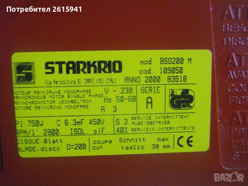 Цена на нова италианска професионална ел.машина 750 вата/ф200мм Starkio за рязане плочи - 399 лв.(204.01 €)