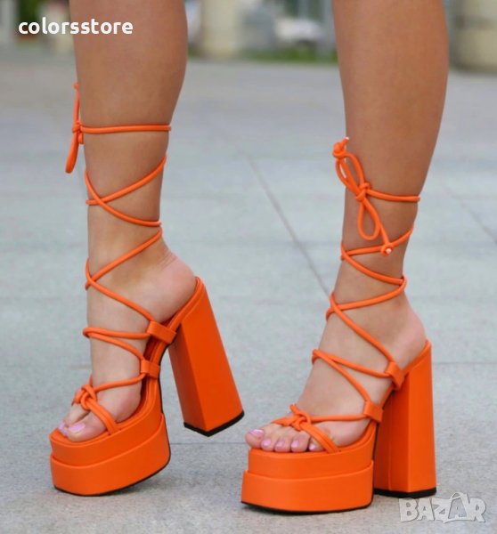Сандали на ток - оранжева кожа - FM25 → Обява 40883468