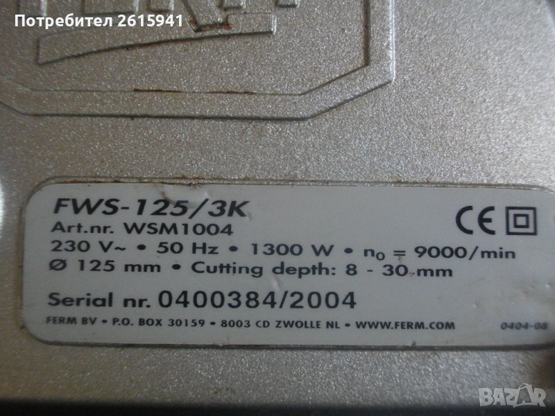 ОПИСАНИЕ на холандска каналокопка FERM - 1300 вата - 299 лв. Марка и модел на машината FERM FWS-125 3 K.