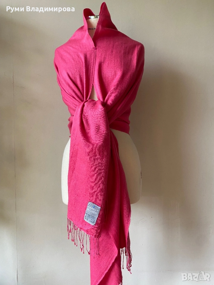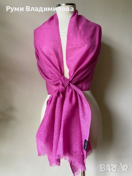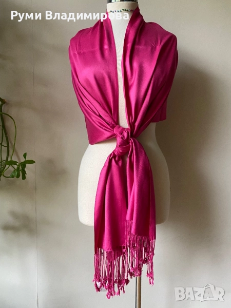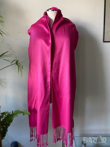 Шал в цикламено, розов цвят с ресни, с етикет, състав 100 % вискоза, мека, лека и лъскава материя, нов, за една по-цветна визия! Доставка с Еконт.