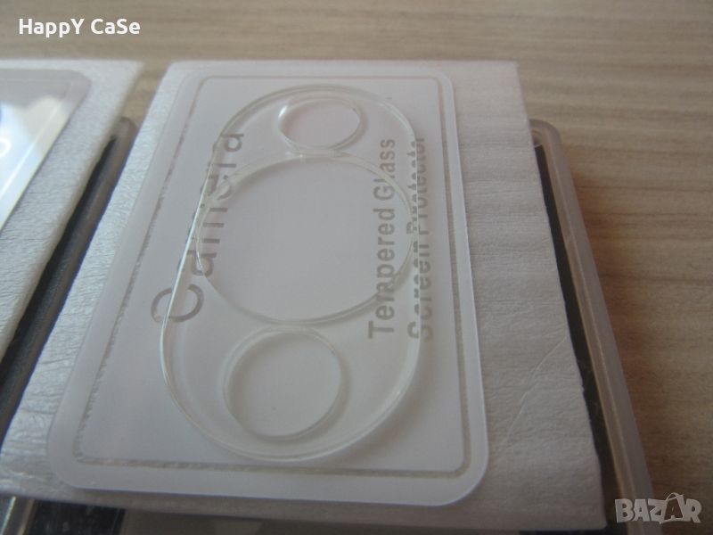 > Обективите са изрязани в стъкления протектор, но отгоре протектора е цял, не е издупчен
