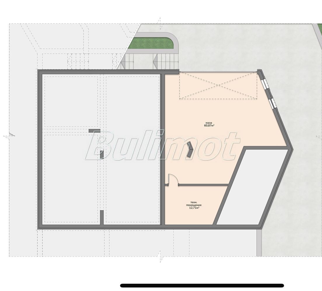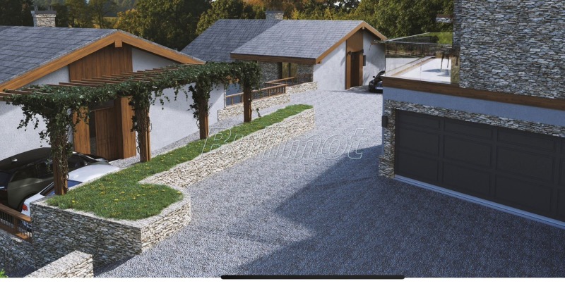 Има и полуподземен етаж с гараж от 61 кв. м и техническо помещение.