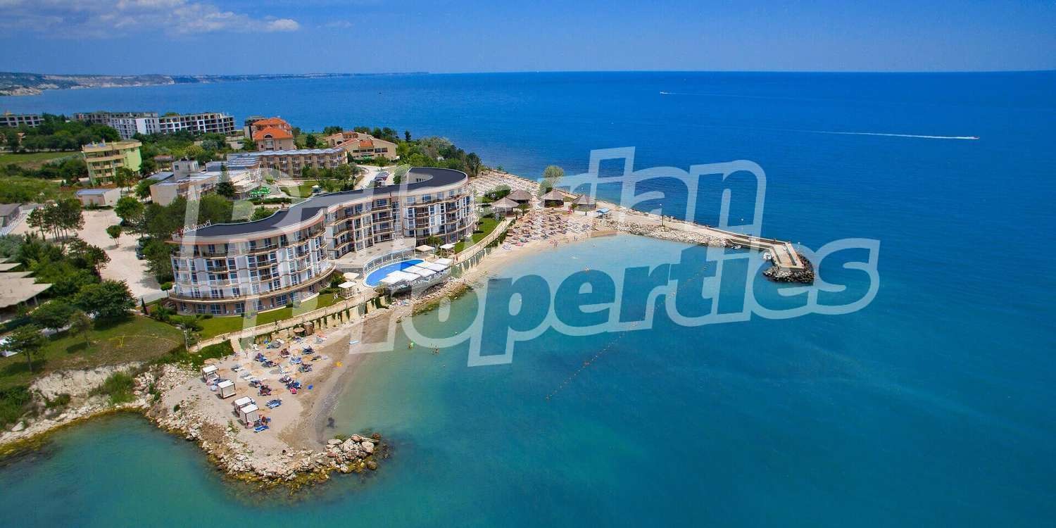 Отличен двустаен апартамент в затворен комплекс на самия бряг на морето, със собствен плаж. Жилището се намира в елитния Роял Бей (2009 година) - луксозен апарт комплекс в средиземноморски стил, построен в един от най-живописните заливи на Северното Българско Черноморие между Балчик и Каварна. Комплексът се намира на едно от изключително красивите места по Северното Българско Черноморие местността Иканталъка между Каварна и Балчик и се слави със своята красива природа, почти недокосната от човешка дейност.