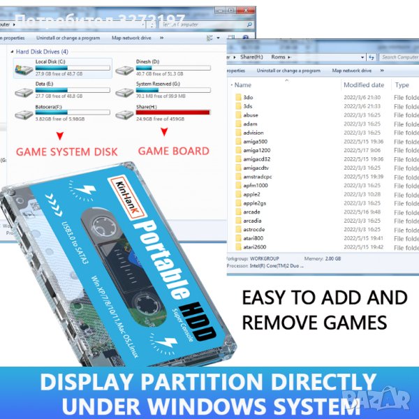 Предварително инсталирани 110 000+ игри и 70+ емулатора, които могат да стартират PS3/PS1/PS2/Dream cast/NAOMI/N64/MD/NES и т.н.