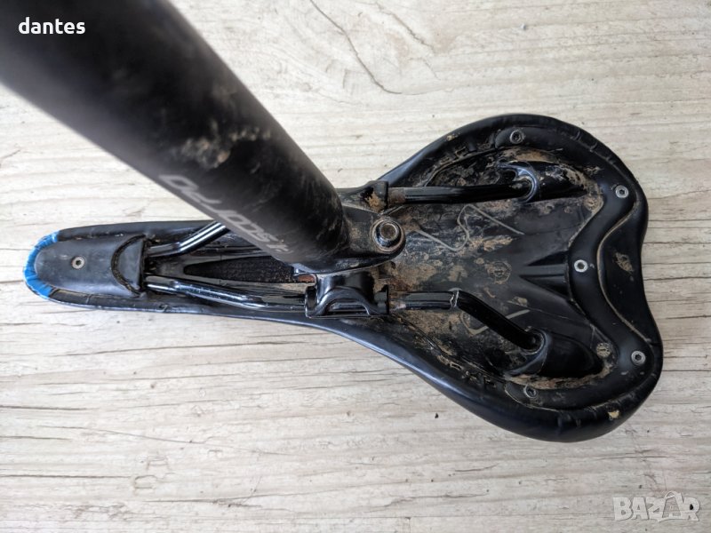 Велосипедна седалка Stevens Oxygen Havoc saddle. Седалката е със счупена дясна релса, точно на свивката. Вижда се от снимките. Всичко друго е запазено може да се използва за резервни части или за поправка.