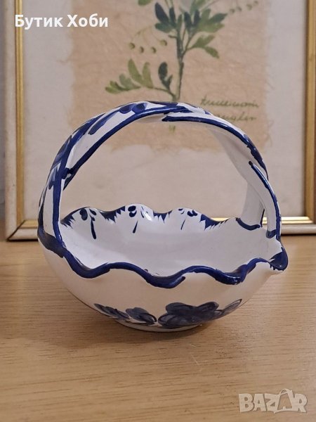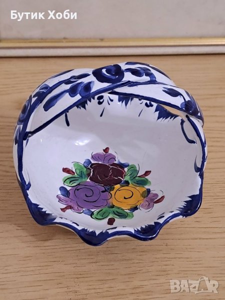 Ръчно изработена и рисувана порцеланова кошничка. Изящна форма и изработка, ярки цветове. Маркирана е. Размери - 10,5 × 11,5см. В перфектно състояние е!