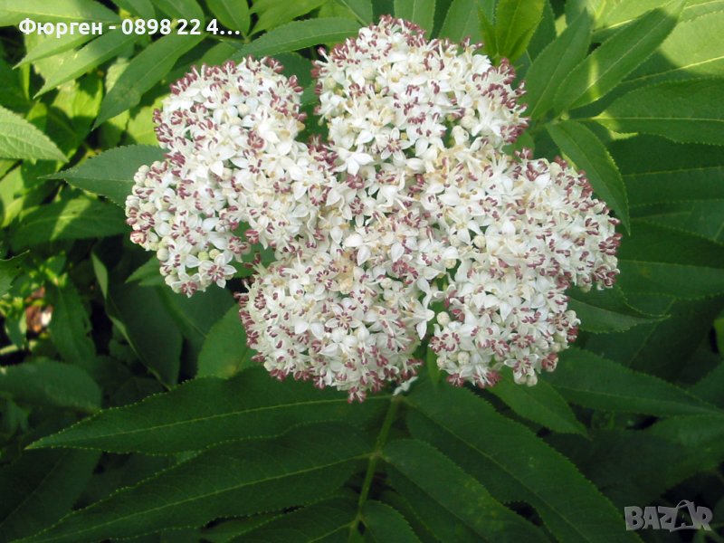 Цветовете съдържат незначително количество етерично масло, цианогенен гликозид и захари; плодовете – антоцианови багрилни вещества, захари, валерианова, ябълчена и винена киселина, дъбилни вещества, смоли, пектин, витамин С и др. В зелените плодове и семената се съдържа цианогенен гликозид, поради което са отровни, но сокът на зрелите плодове не е отровен. В корените се съдържат дъбилни вещества и танини.
