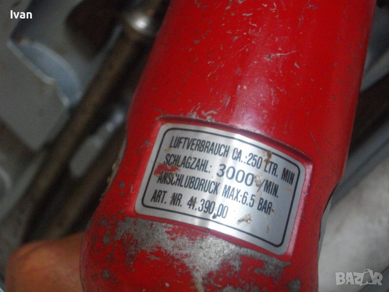 Немски оригинален професионален пневматичен секач/къртач/чук - модел на Ейнхел с пълният си комплект от 7 бр. шила, пружинната универсална глава на резба за шилата и оригинален куфар на марката и модела.