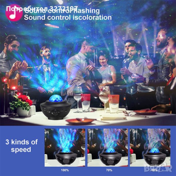 Мигащ режим на управление на звука: Звездното небе мига с ритъма на музиката, оживявайки парти атмосферата.