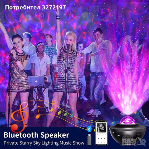 Led Starry Sky Star Galaxy Проектор Нощна светлина Вградени 2бр. Bluetooth високоговорители за дома