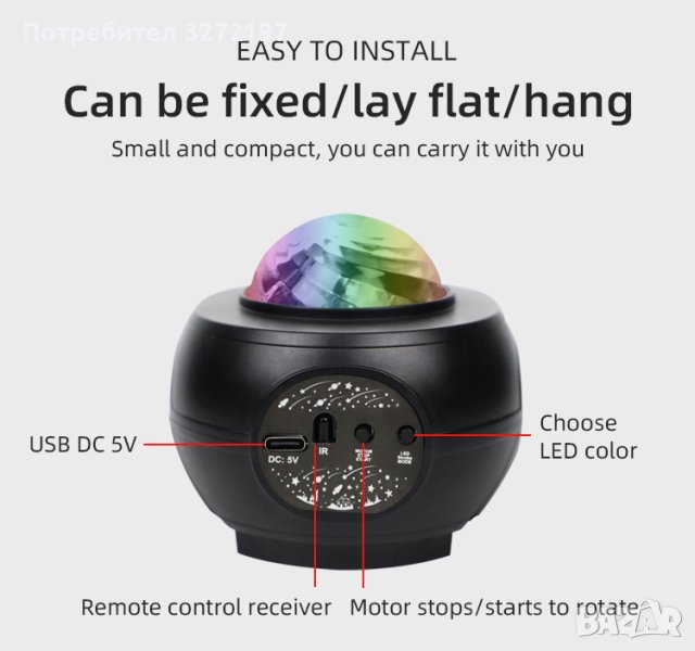 Перфектен за декорация на закрито като звезден галактичен проектор.