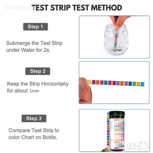Тест лентите са подходящи за питейна вода, аквариуми, плувни басейни и спа, индустриална вода, езера, минерална вода и други