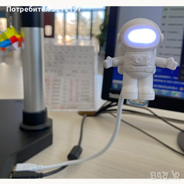Бяла преносима настолна USB лампа за четене с форма на астронавт DC 5VLED светлина за компютър PC и др.