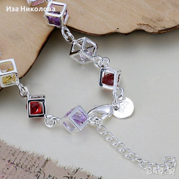 Сребърна гривна с многоцветни цирконии, снимка 1 - Гривни - 40901960 Сребърна гривна с многоцветни цирконии, снимка 2 - Гривни - 40901960 1/2