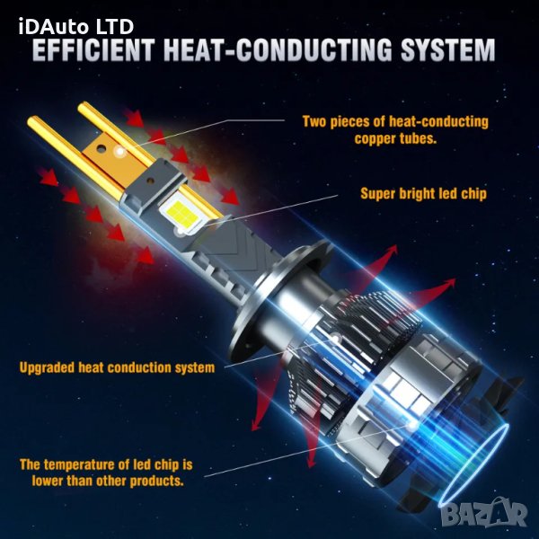 LED Крушки 45000lm Комплект h1, h7, лед, светлини, осветление