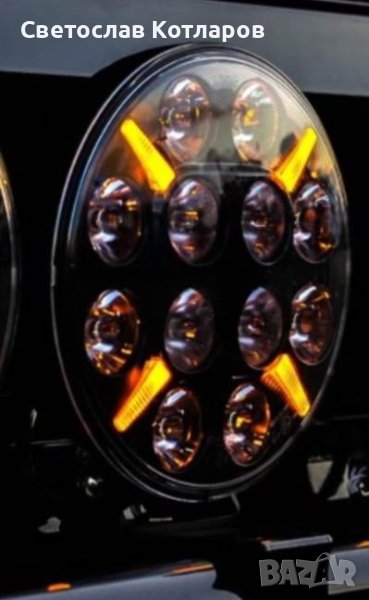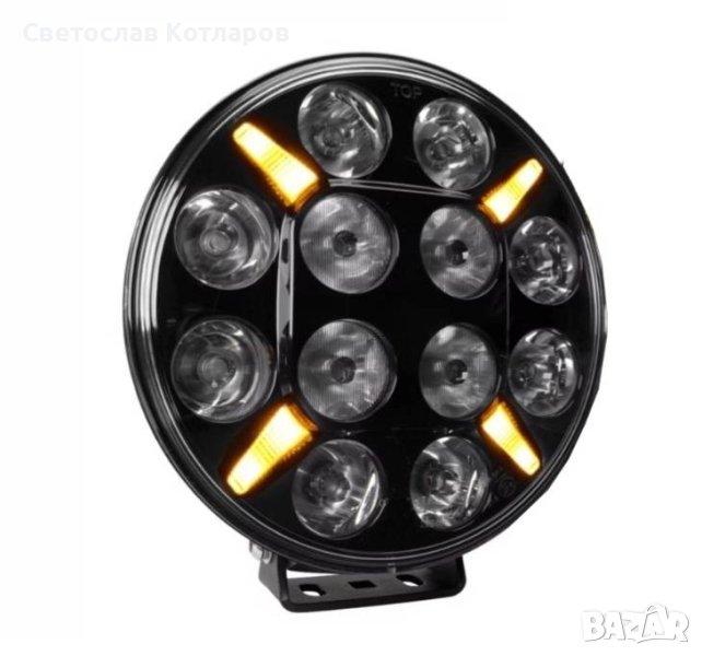 LED Диоден Халоген, Фар, с Жълта, Оранжева Габаритна Светлина, Ø 218мм, 12V-24V, 12 Диода, За Джип, Камион, Трактор, Багер, Земеделски Машини