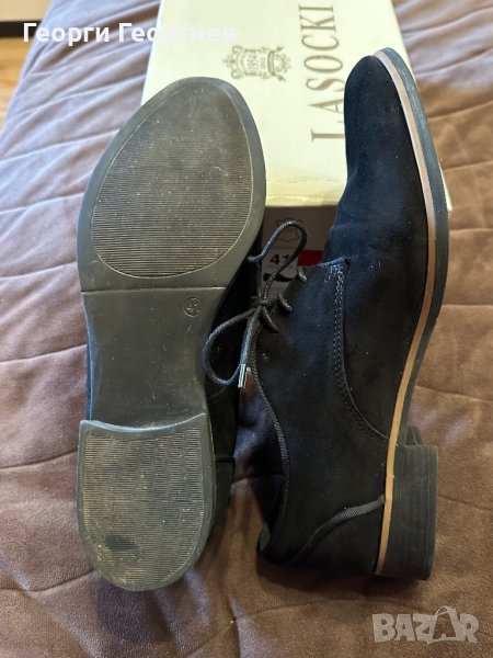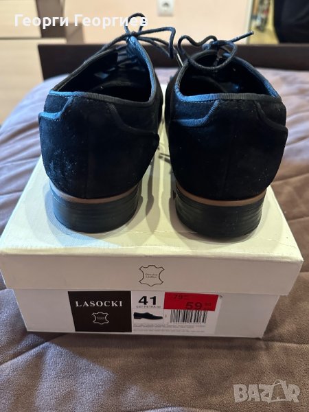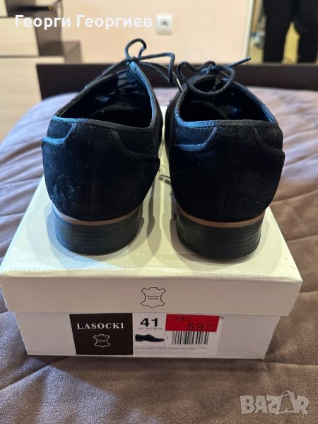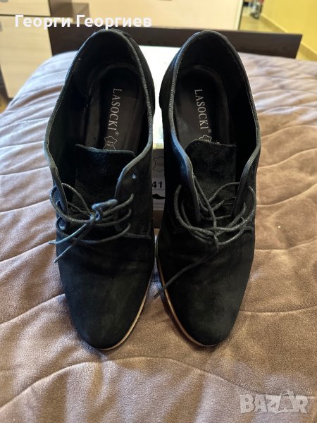 Елегантни обувки, подходящи както за костюм, така и за дънки. Естествен велур, марка Lasocki, 41 номер. Обувани два, три пъти. Без забележки. Купувани на намаление за 60 лв., редовна цена 100 лв.