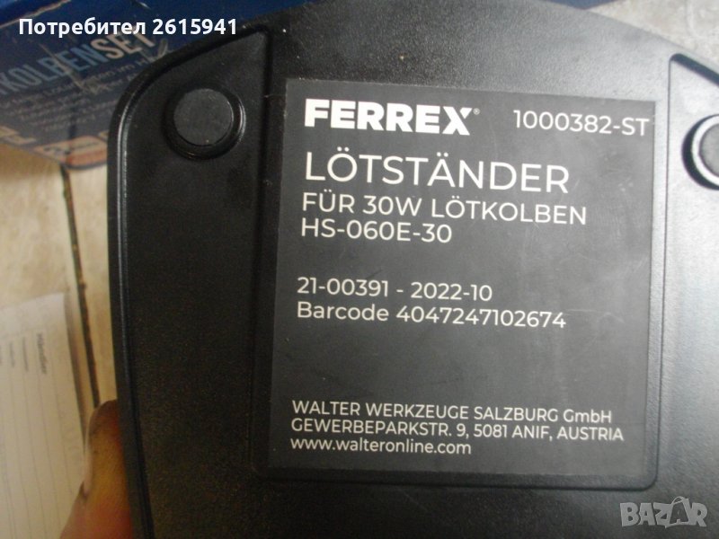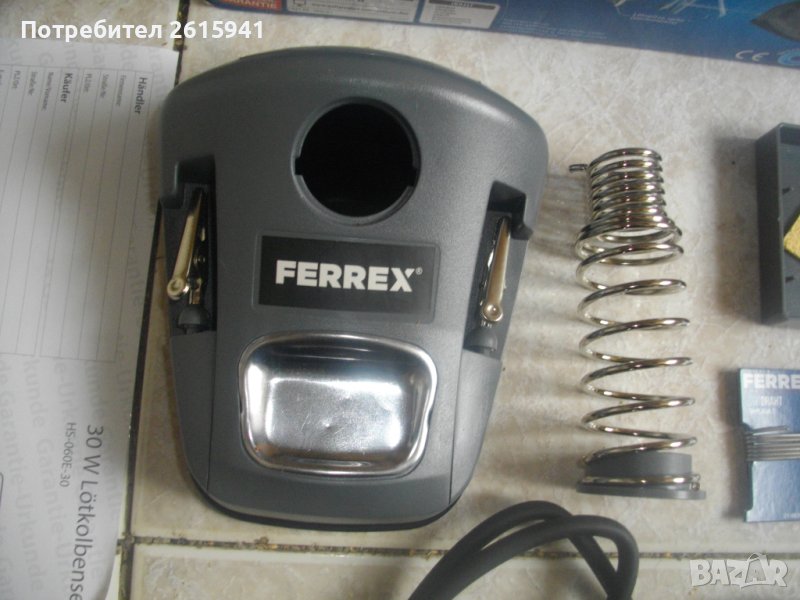 ОПИСАНИЕ на нов ел.поялник станция . 129 лв. Съвсев нов, неизоплзван и неупотребяван. Австрийски оригинален. Пълне комплект. Марка и модел - FERREX HS-060E-30