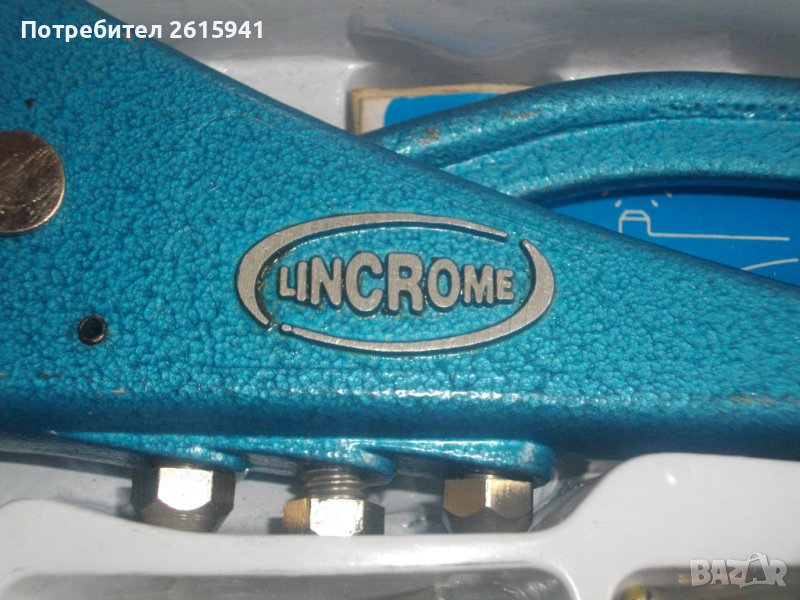 ОПИСАНИЕ на нова немска ръчна нитачка за поп-нитове - 199 лв. Професионална. Съвсем нов комплект, неизползван и неупотрубяван. Оригинално старо качество немско. Марка LINCROME.