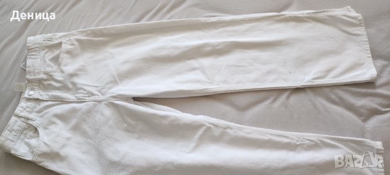 Трите чифта дънки са еднакъв модел, размер 146 по етикет, но може да са леко по-дълги. Прави крачоли /свободни/, тясна талия и тесен ханш, регулируеми в талията. Тънък дънков плат, подходящ и за лятото. Стоят добре на по-фини високи девойки. Много запазени, като зеленото е носено само 1-2 пъти. Цена за бялото и кафявото по 14 лв./бройка, цена за зеленото 18 лв. При интерес ще дам размери.