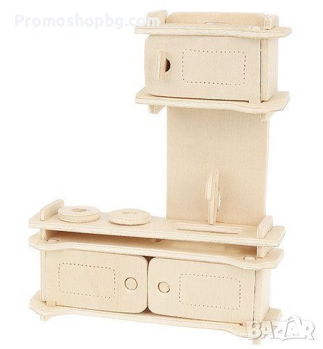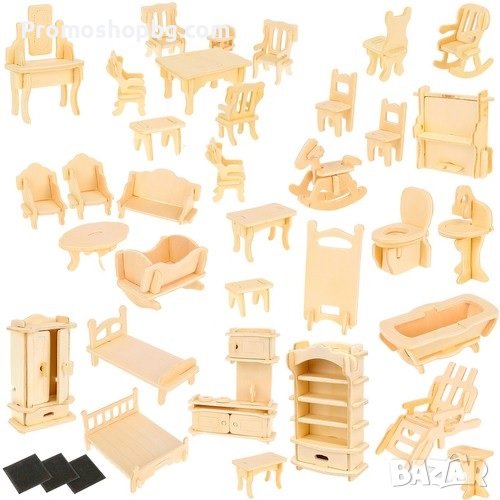 3D дървен пъзел за сглобяване на мебели за кукленска къща 34 бр.