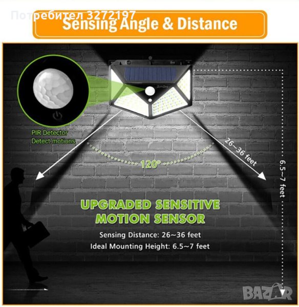 PIR сензорен ъгъл: 120 градуса