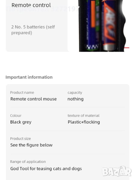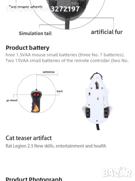 Забавна играчка за котка с дистанционно управление -Мишка Спецификации: