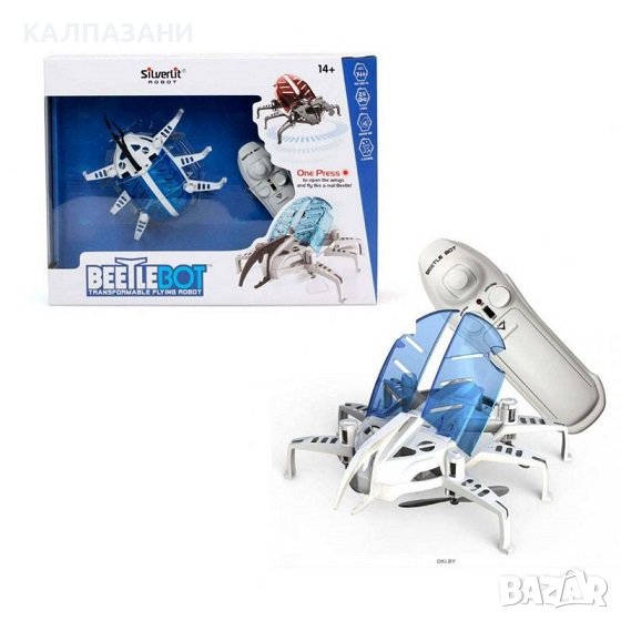 При еднократно натискане на бутона на дистанционното разтваря криле и полита като истинско насекомо.