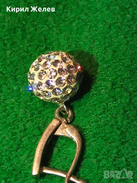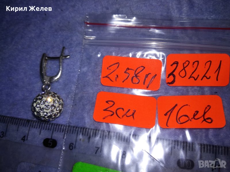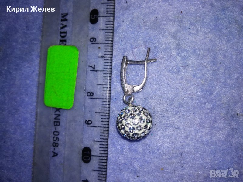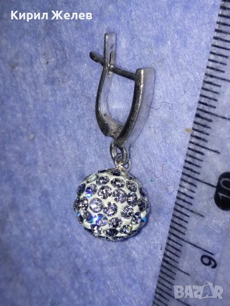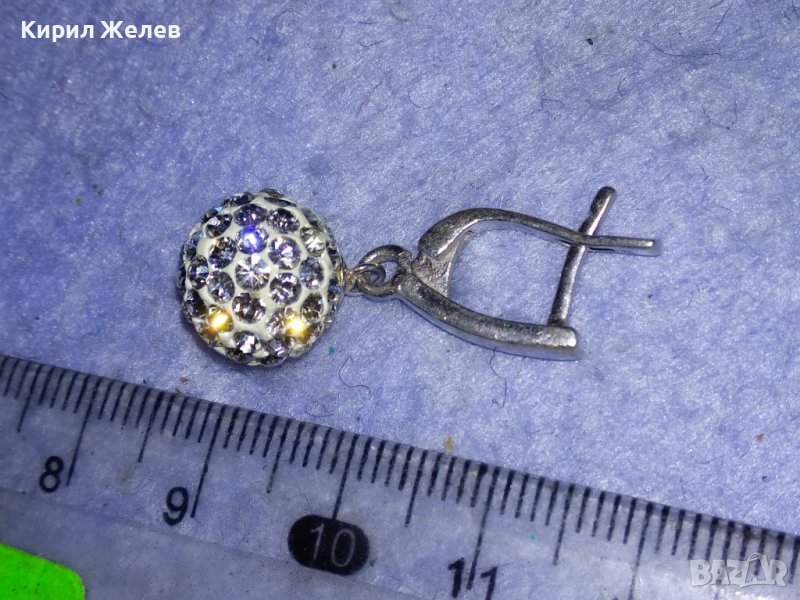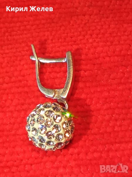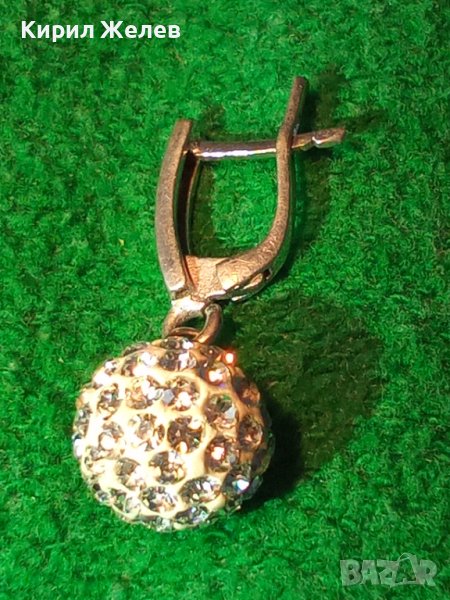 КРАСИВА НЕЖНА СРЕБЪРНА ВИНТИДЖ ОБЕЦА СРЕБРО 925 с БЯЛА ПОЗЛАТА ЕМАЙЛ и ФАСЕТИРАНИ КРИСТАЛИ 38221