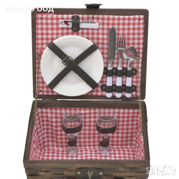 кошница за пикник за двама в кафяв цвят, с размер 33/27/18 см