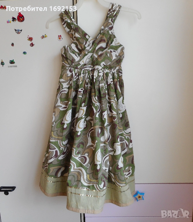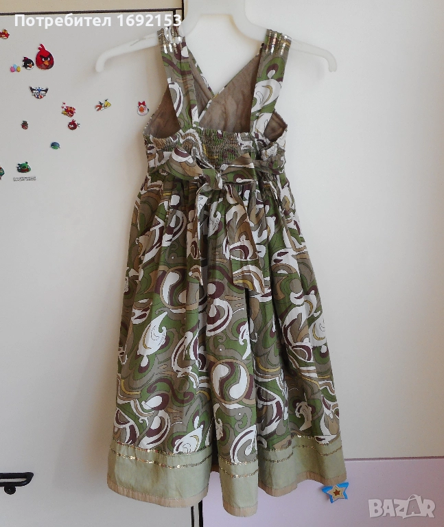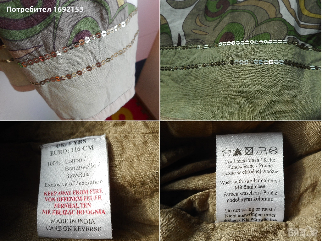 1) Зелена рокля за момиче на 6 год. с ръст 116 см. Дълга е 77 см, 100% памук.