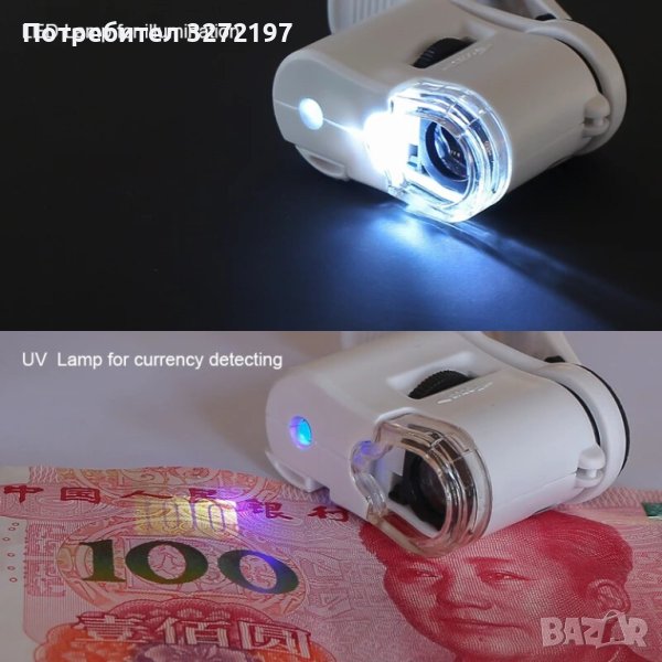 Джобен микроскоп с щипка за мобилен телефон, UV светлина