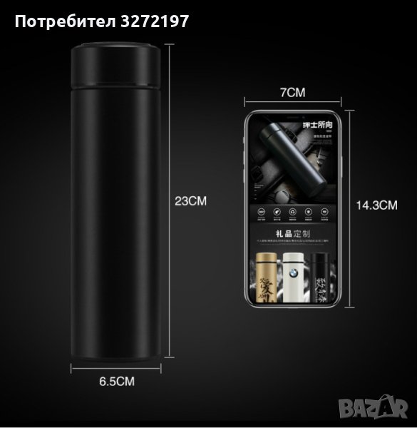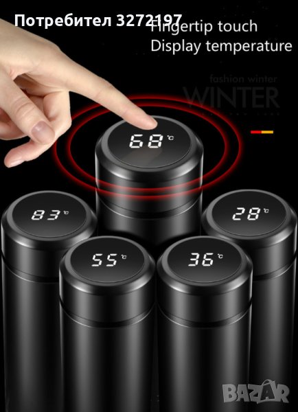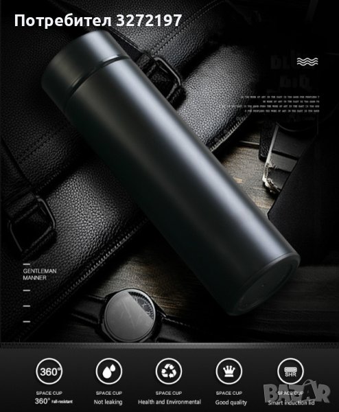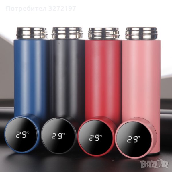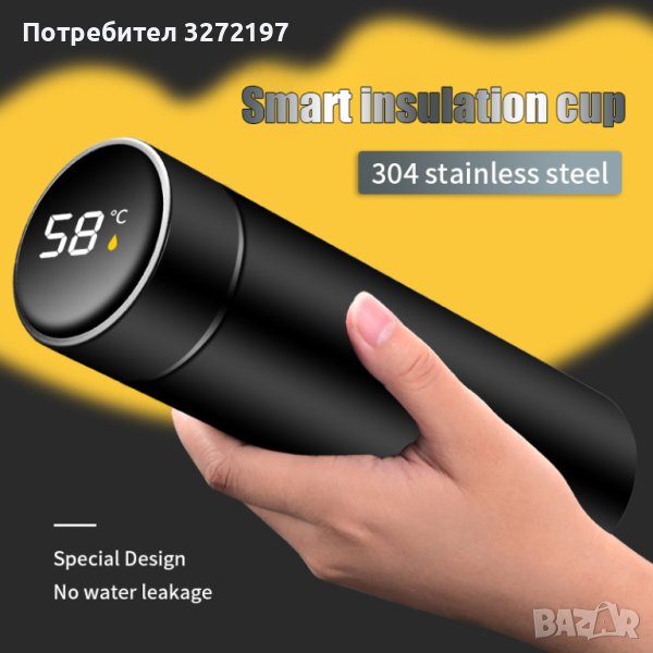 Креативна, интелигентна термос бутилка от неръждаема стомана,показване на температурата - 500 мл.