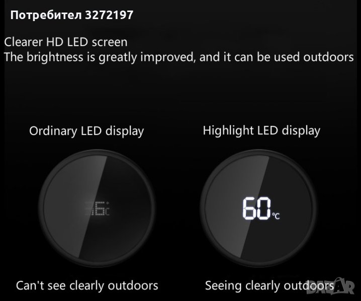 - По-точно измерване на температурата Обърнете термоса, така че водата да контактува с капака на термоса, за да измерите по-точно температурата на водата