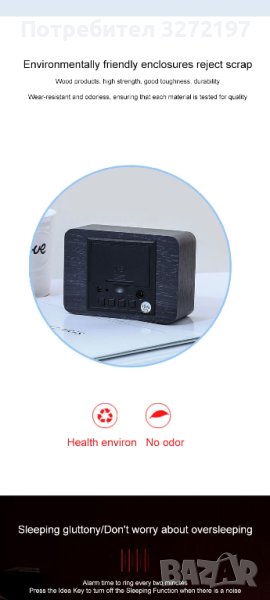 Светещ цифров дървен LED многофункционален настолен USB/AAA електронен часовник