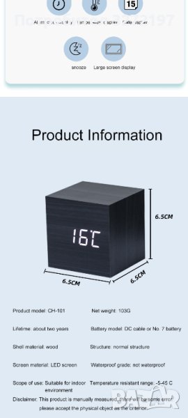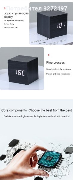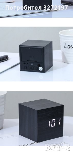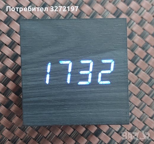 Светещ цифров дървен LED многофункционален настолен USB/AAA електронен часовник, квадрат, гласово управление