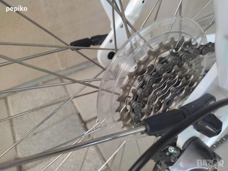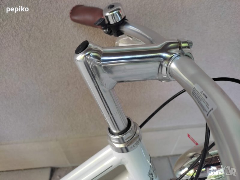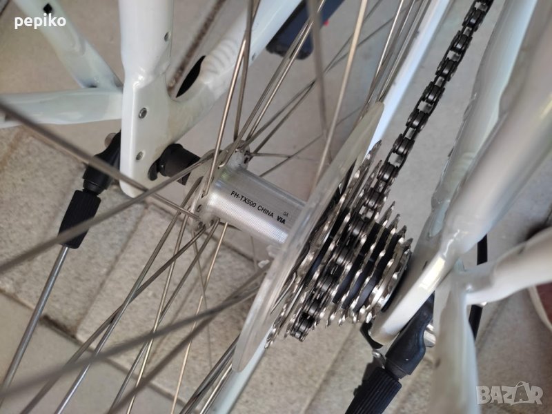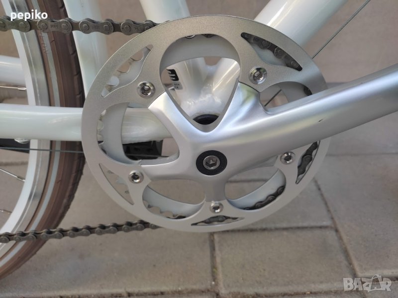 НОВ градски алуминиев велосипед EXEL SIOR 28 цола,оригинален велосипед на EXEL SIOR 28 цола с 8 скорости,фиксирани палцови превключватели SHIMANO CLARIS 8,средно движение касета,алуминиеви курбели със сменяема плоча,алуминиеви педали,заден отклонител SHIMANO CLARIS,задни венци SHIMANO 8,задна алуминиева главина с автомат SHIMANO FH-TX500,предна алуминиева главина с автомат SHIMANO HB-TX500,метални калници,алуминиев багажник,алуминиево колче на седалката,удобна седалка с пружини SELLE ROYAL,алуминиево колче на кормилото,алуминиево кормило,алуминиеви лостчета на спирачките SHIMANO CLARIS ,кожени грипове,предна и задна алуминиеви убрейк спирачки,алуминиеви двойностенни усилени капли,НЕРЪЖДАЕМИ спици,гуми със светлоотразителен кант и безшумен грайфер 700 х 1,5-32 х 622,осветление от пред и от зад електронно,размер на рамката 55 х 60 см.тегло 14,5 кг.