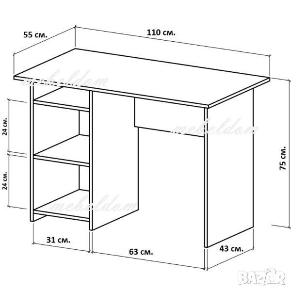 Бюро 110см. с плавна врата(код-1134) поставяне: до стена,бюрото е еднолицево