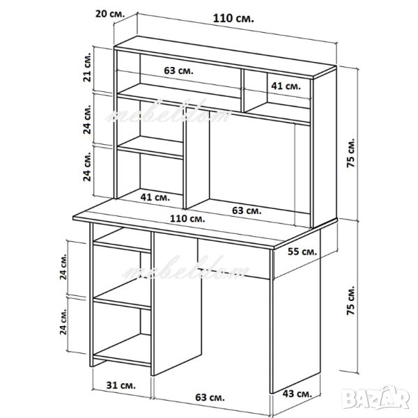 Бюро 110см. с надстройка и плавна врата(код-1181)