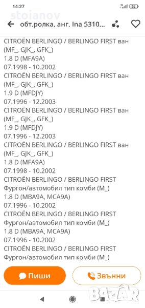 Обтяжна ролка ангренажен Ситроен,Пежо 1.9d-Iinaa 531004810, снимка 1 - Части - 40935715 Обтяжна ролка ангренажен Ситроен,Пежо 1.9d-Iinaa 531004810, снимка 2 - Части - 40935715 Обтяжна ролка ангренажен Ситроен,Пежо 1.9d-Iinaa 531004810, снимка 3 - Части - 40935715 1/3