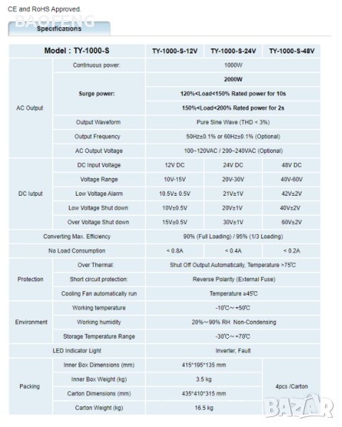 1000W -12V,24V - 349,98лв. ; Нова ЦЕНА - 325,98лв.