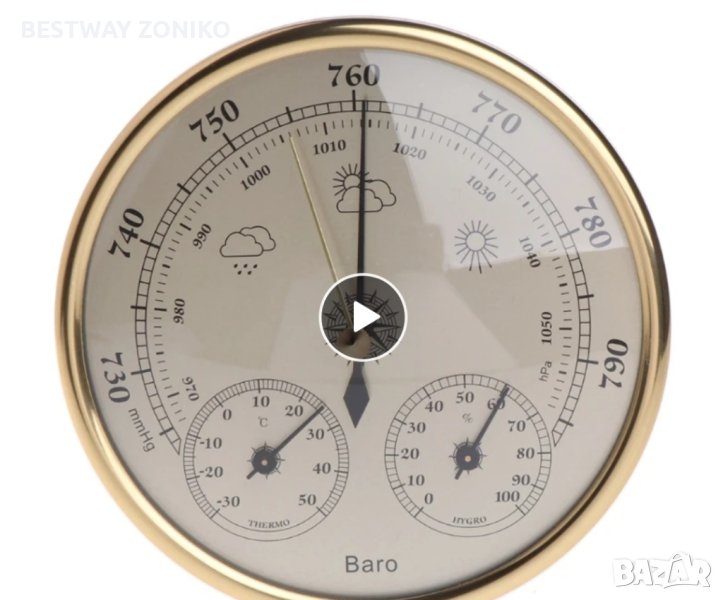 Барометър анаериден Ф 130мм с термометър и влагомер → Обява 40936841
