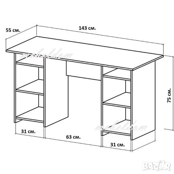 Бюро 143см. с 2 плавни врати(код-1191) поставяне: до стена,бюрото е еднолицево